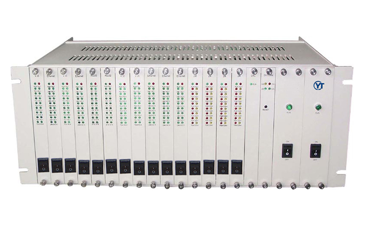 標(biāo)準(zhǔn)19英寸4U結(jié)構(gòu),16個(gè)插槽,星型組網(wǎng),可以網(wǎng)管,與協(xié)議轉(zhuǎn)換器、PDH光端機(jī)等系列卡式轉(zhuǎn)換器配合使用。雙電源供電,交直流可選。